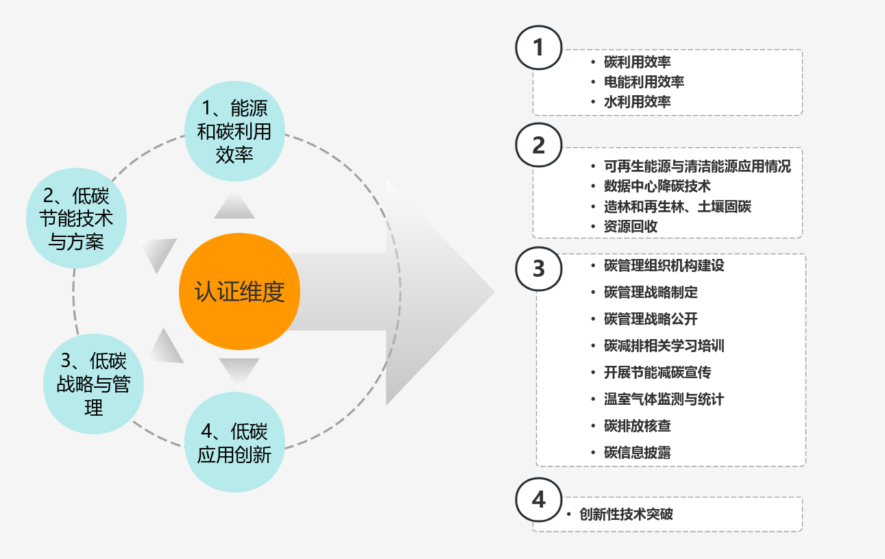 2、为什么DC Tech低碳等级认证要从能源和碳利用效率、低碳节能技术与方案、低碳战略与碳管理、低碳创新应用四大维度展开?
