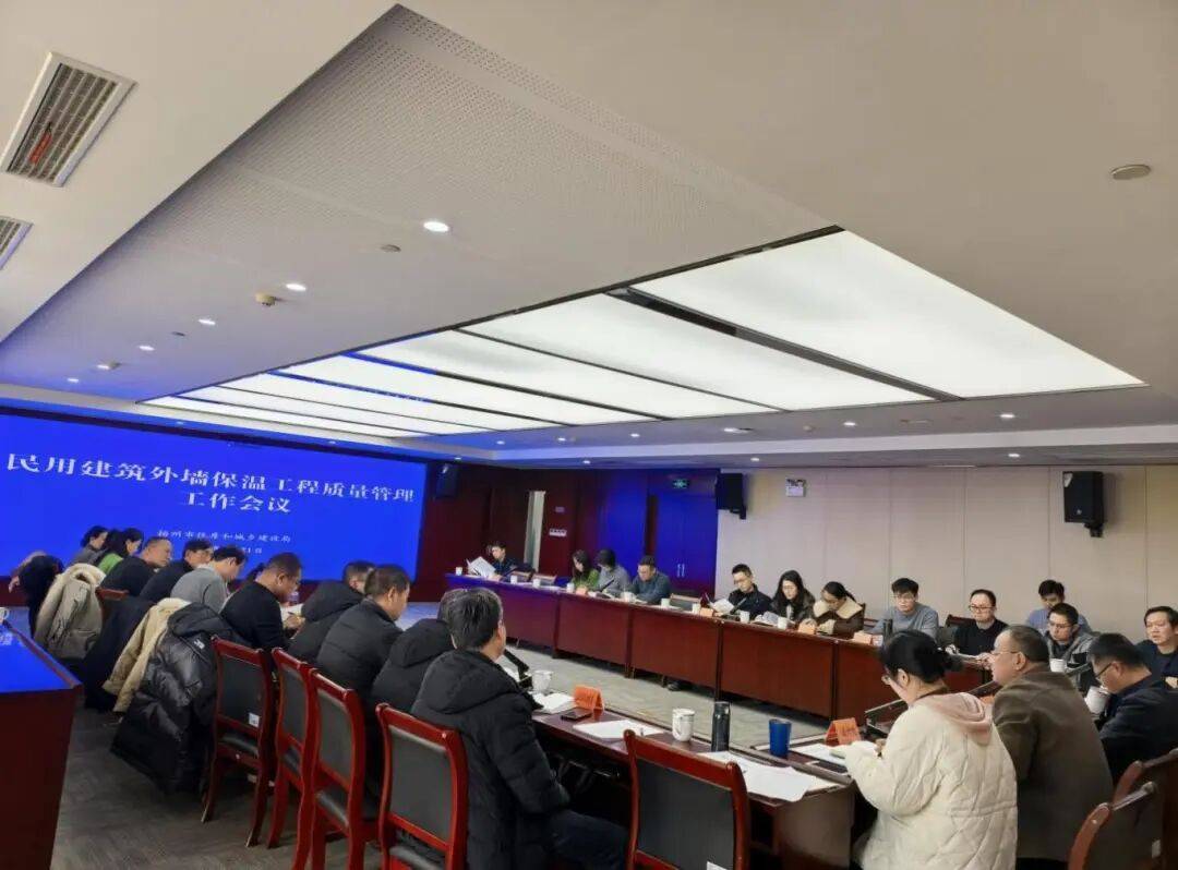 会议传达学习相关文件要求,回顾当前我市建筑保温材料管理工作进展情况,对《关于进一步加强民用建筑外墙保温工程质量管理工作的通知》(扬建科〔2026〕1号)进行宣贯解读。与会人员围绕工作进展和举措、存在问题及下一步打算进行交流发言。