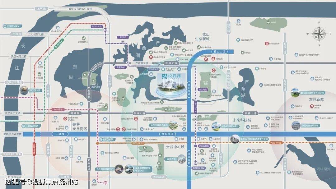 除了拥有独一档的产品力,更为关键的是,联投悦西湖所处的花山生态新城,多年累积,醇熟配套已“跃然纸上”,交通、商业、教育等迎来了大爆发。
