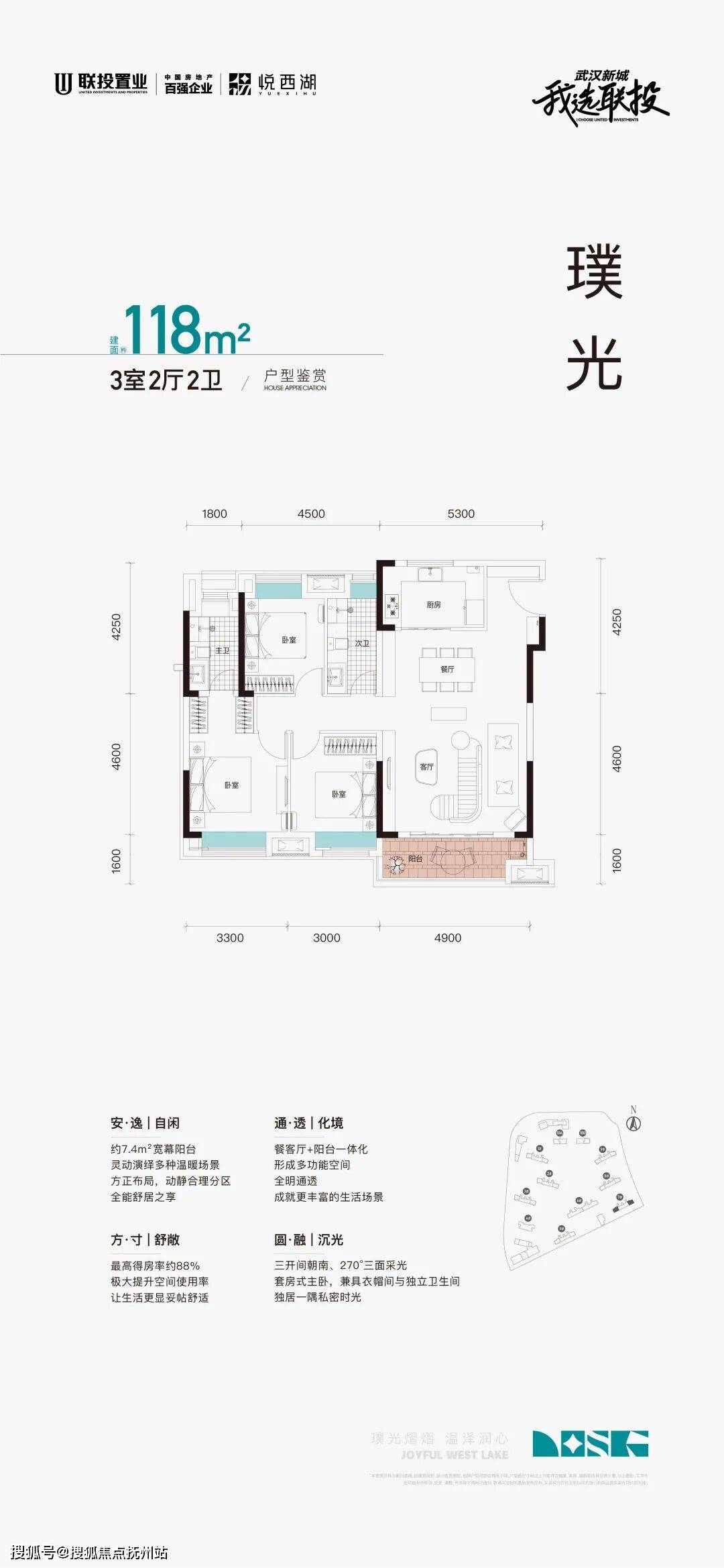 东边户则是将主卧奢配有270°转角可拓飘窗,可享受更多拓展空间,实际得房率最高可达88%!