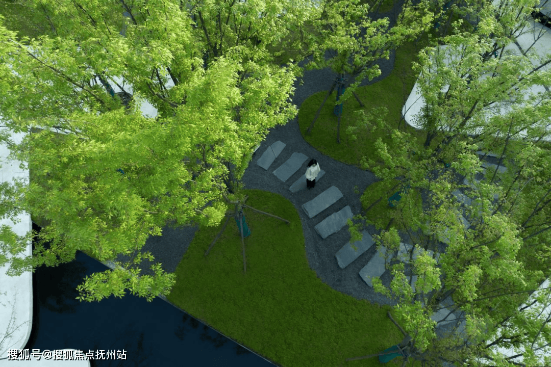 回家的路上,经过下沉式景观庭院,有多样休憩放松的自由空间。同时,项目配置风雨连廊,下雨也能保障归家之路无忧。