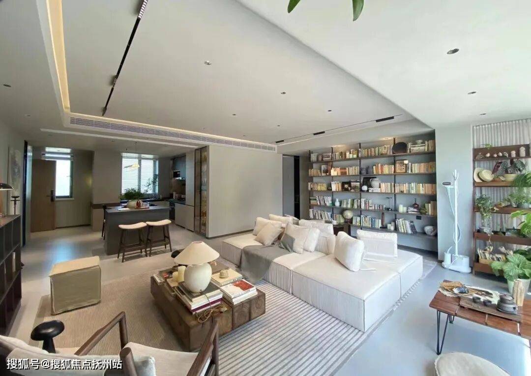 尺度超然的宽幕横厅,能够满足一大家子的聚会所需,甚至还能划分出一个开放式书房,供年轻人居家办公。