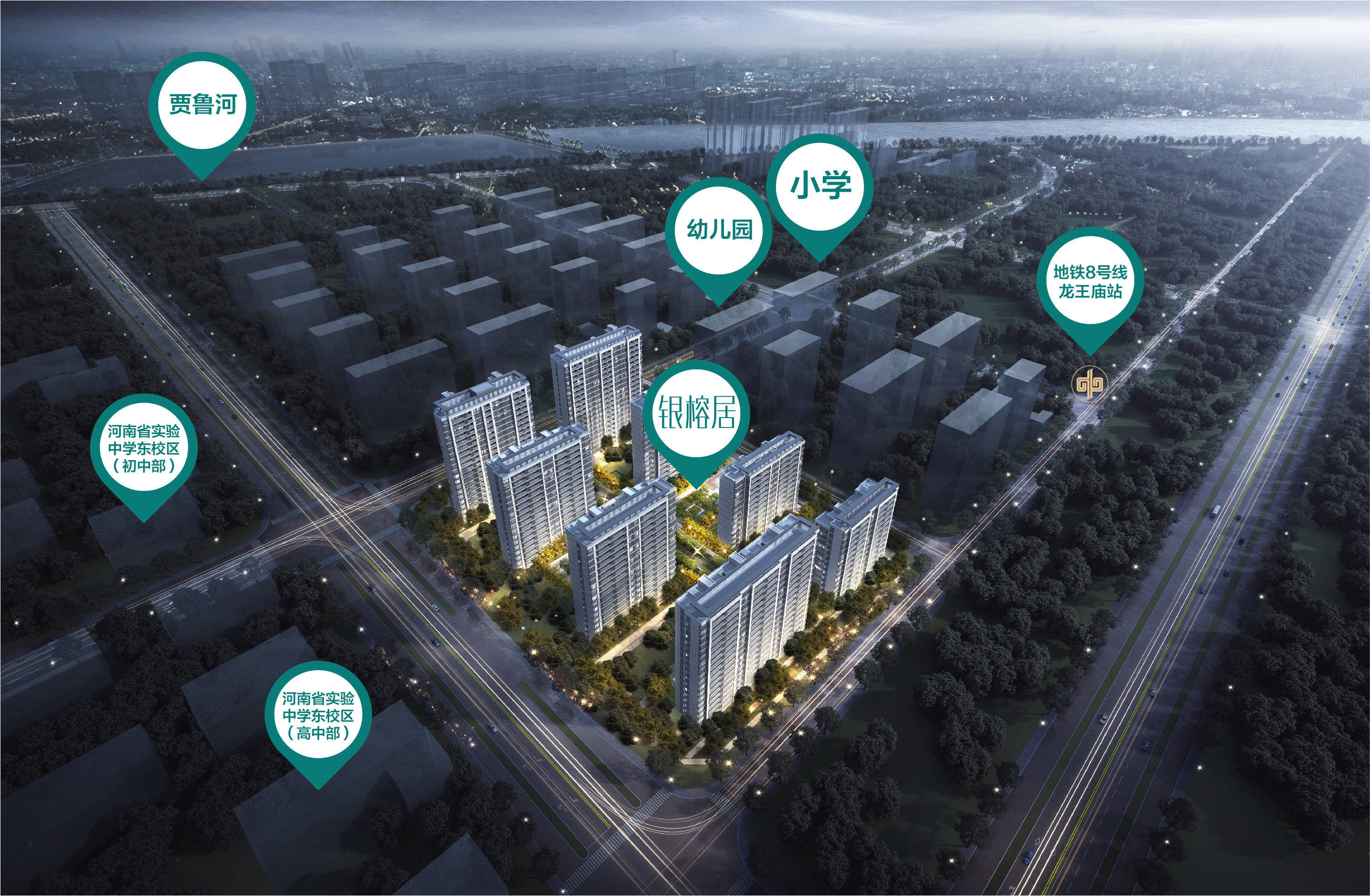 乘城市向东之势,尊踞郑东崛起高地项目尊踞郑东象湖,省级政务集群,站定中部发展圆心。郑开大道、绿博大道融汇东西,地铁8号线(在建)龙王庙站在侧(预计2024年底竣工),毗邻象湖,华中阜外医院等医疗服务健康护航。【名校为邻】一路之隔省实验,家门口的菁英教育银榕居与全国百强名校河南省实验中学仅一路之隔,预计2024年秋季投入使用。学校规划36班初中和30班高中,依托老牌名校雄厚师资力量与优越平台,领誉郑东。