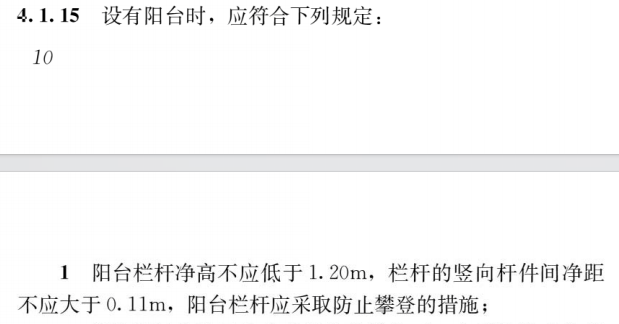 (1)阳台栏杆净高不应低于1.20m。2011版是按照住宅层数作出不同要求,2022版《住宅项目规范》(征求意见稿)将阳台栏杆高度统一调整为1.1米,2025版在此基础上再提高标准,避免因重心外移导致发生高坠事故。